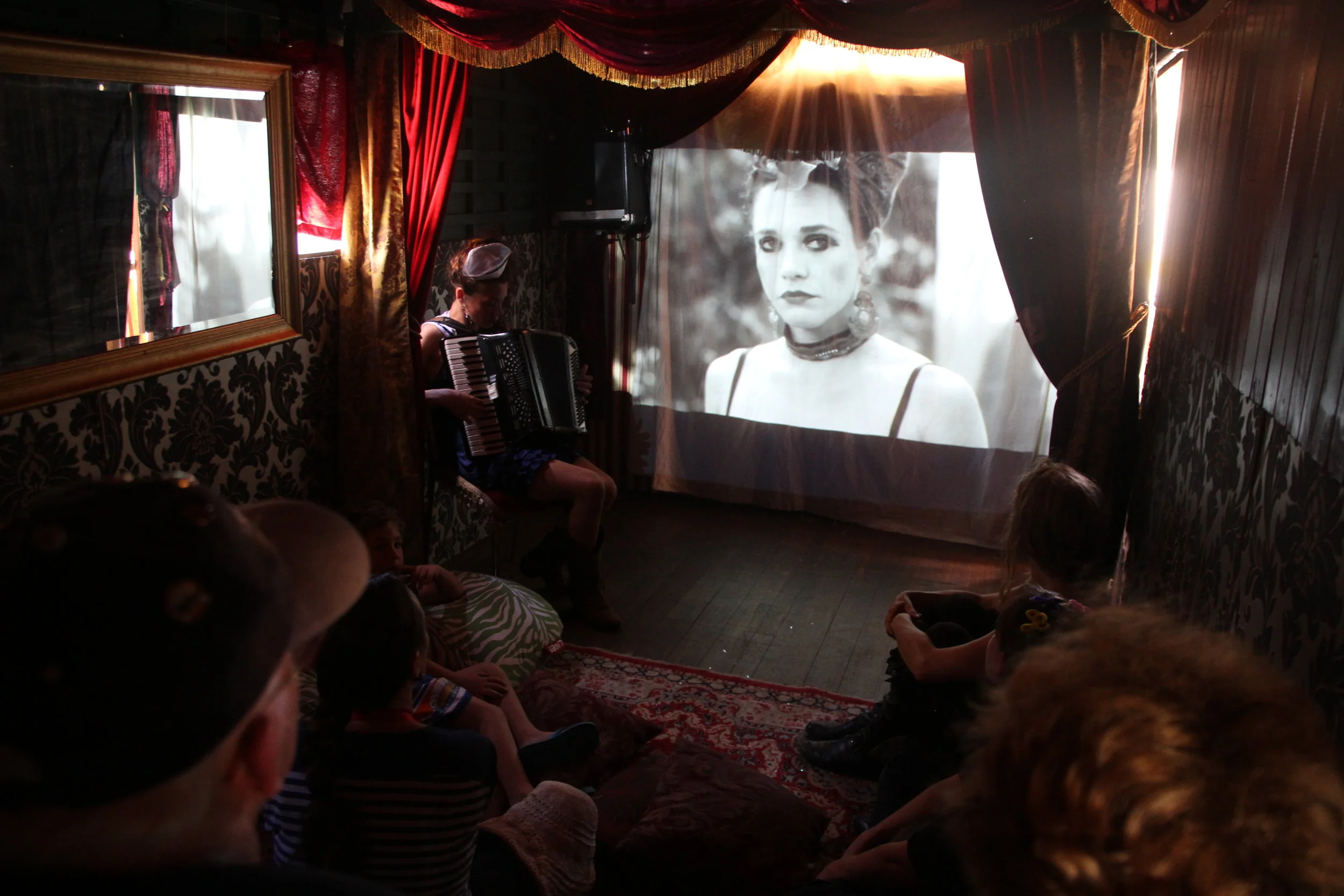 WHISKEY BLISS, PIANO ACCORDION DIVA, SINGER/SONGWRITER - PERFORMING ORIGINAL SOUNDTRACK TO ‘THE WINDING ROAD’ SILENT FILM WRITTEN AND DIRECTED BY DAMIEN TWOMEY, IN THE STRUMPET SALON ADELAIDE FRINGE FESTIVAL 2015